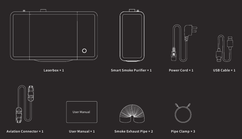- Betreiben Sie die Laserbox nicht, bevor der Rauchabscheider ordnungsgemäß angeschlossen ist. Die meisten Materialien erzeugen bei der Verarbeitung irritierenden Rauch.