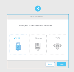 - Wählen Sie "USB" und klicken Sie auf "Next" (Weiter), um die Verbindung zu starten.