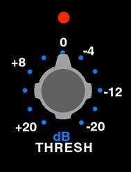 - THRESH (Schwellenwert): Der Pegel, bei dem die Kompression beginnt (+20dBu bis -20dBu)