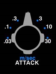 - Feste Attack-Zeiten: .03, .1, .3, 1, 3, 10 und 30 Millisekunden (m/sec)