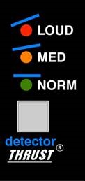 Die patentierte THRUST®-Funktion wird seit vielen Jahren in den berühmten ATI Paragon- und Paragon II-Konsolen sowie im Pro-6 Input Strip verwendet. Diese Schaltung platziert einen Filter vor dem RMS-Detektor mit einer Steigung von 10 dB pro Dekade, was das Inverse der Rosa-Rauschen-Energiekurve ist. In der Akustik wird die Rosa-Rauschen-Kurve verwendet, um die Energie im Verhältnis zur Frequenz über das Audiospektrum auszugleichen, da Schall mehr Niederfrequenzenergie als Hochfrequenzenergie benötigt, um für Ihr Ohr korrekt zu klingen. In Hi-Fi-Geräten wird eine "LOUDNESS" (LAUTSTÄRKE)-Kontur verwendet, um die Musik bei niedrigeren Pegeln auszugleichen, damit sie korrekt klingt. Selbst mit dieser Kurve gibt es immer noch eine erhebliche Menge an Niederfrequenzinformationen im Vergleich zu Hochfrequenzinformationen im Audiosignalpfad. Wenn dieses Signal in einen RMS-Detektor eingespeist wird, verarbeitet der Detektor das Signal in eine DC-Steuerspannung basierend auf diesen lauteren niedrigen Frequenzen, was zu einer Steuerspannung führt, die die niedrigen Frequenzen des Signals begünstigt und Pumping sowie einen Verlust an Punch verursacht. Manchmal ist dies nicht wünschenswert. Durch das Umschalten der THRUST®-Taste in die Position MED (MITTEL) oder LOUD (LAUT) wird dieser inverse Filter vor dem RMS-Detektor platziert, wodurch die Energie ausgeglichen wird, indem die Energie in den niedrigen Frequenzen reduziert und die Energie in den hohen Frequenzen erhöht wird, sodass jede Oktave die gleiche Energie hat, anstatt dass jede Oktave die Hälfte der Energie der darunterliegenden hat. Dies erzeugt einen einzigartigen Kompressionseffekt, der zwar die Gesamtverstärkung reduziert, aber der Klang ist viel druckvoller und das Signal klingt tatsächlich viel weniger komprimiert.