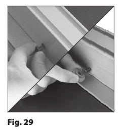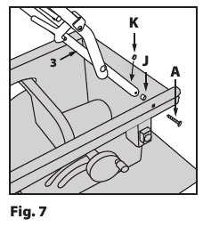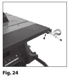 - Lösen Sie die beiden Feststellschrauben (eine vorne und eine hinten an der Maschine) unter der linken Seite der Maschinentischplatte (Abb. 35).