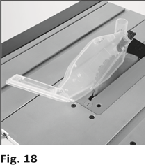Führen Sie das Werkstück durch die Säge, wobei es am Parallelanschlag anliegt. Wenden Sie gleichmäßigen, stetigen Druck an und verwenden Sie bei Bedarf einen Schiebestock (Abb. 46).