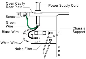 Der Hochspannungskondensator bleibt nach dem Ausschalten des Ofens etwa 60 Sekunden lang geladen. Warten Sie 60 Sekunden und kurzschließen Sie dann den Anschluss des Hochspannungskondensators (d.h. die Verbindungsleitung des Hochspannungsgleichrichters) mit einem isolierten Schraubendreher gegen das Gehäuse.