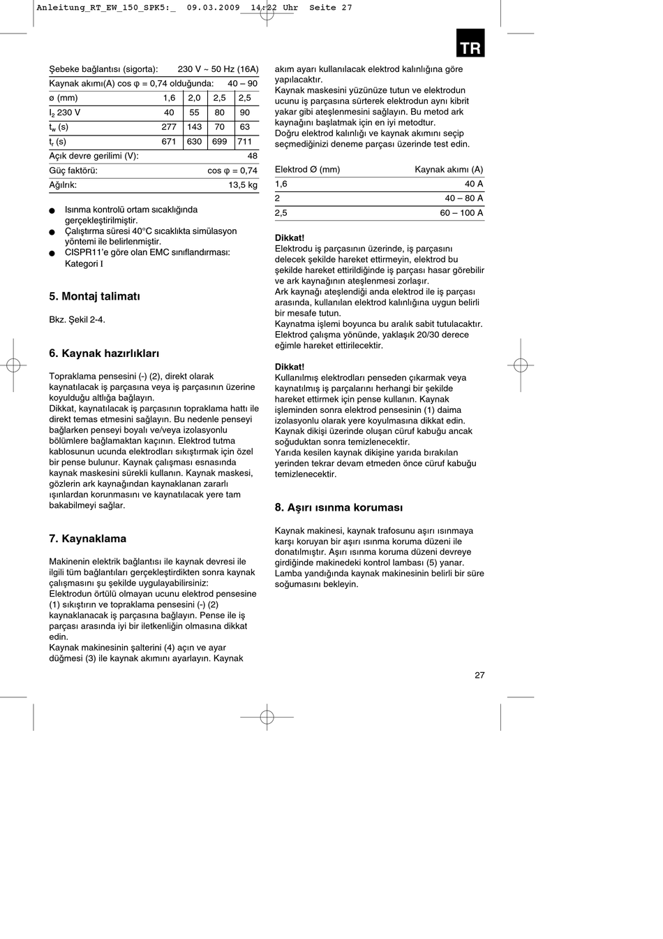 ak∂m ayar∂ kullan∂lacak elektrod kal∂nl∂©∂na göre
