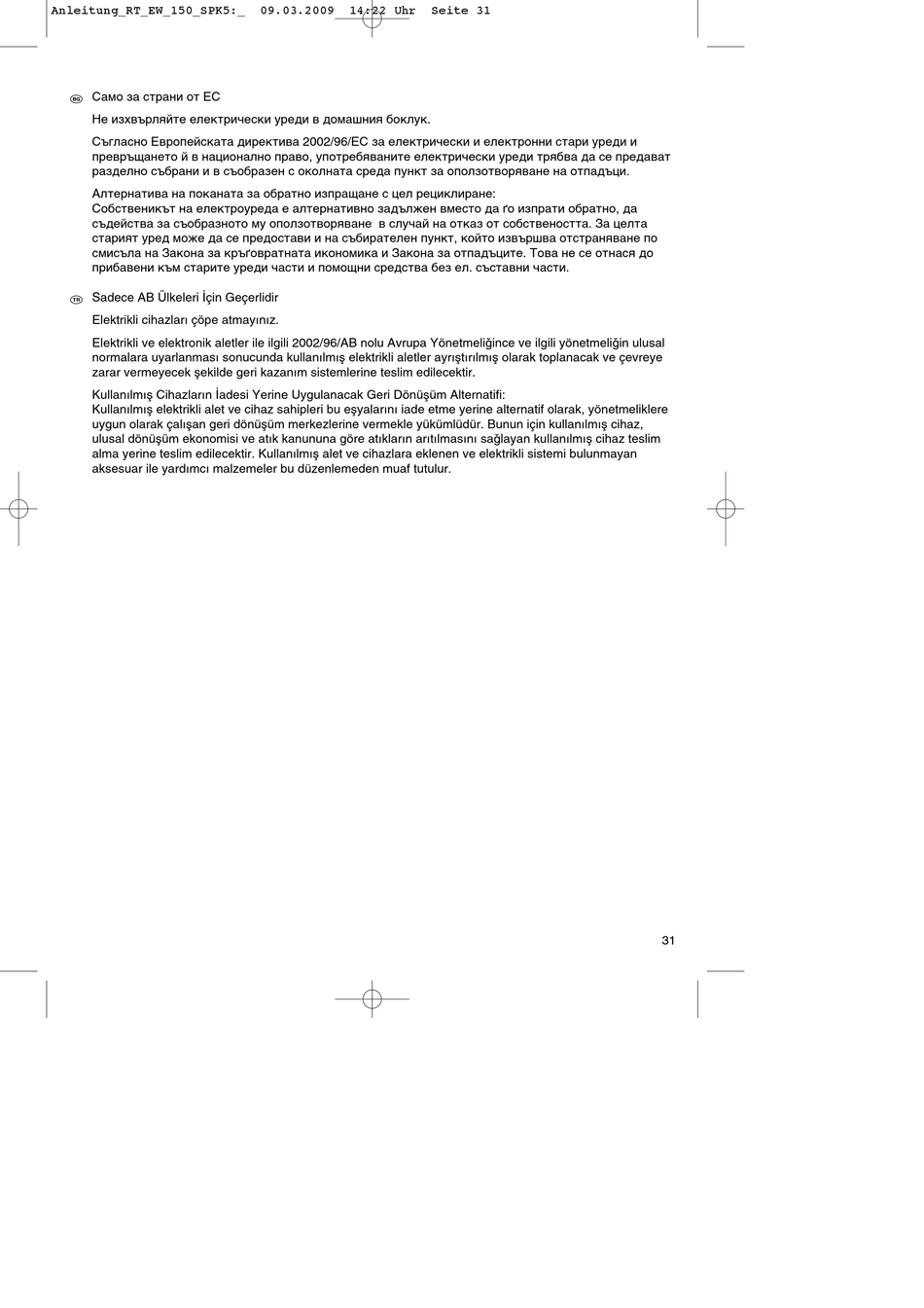 Elektrikli ve elektronik aletler ile ilgili 2002/96/AB nolu Avrupa Yönetmeli©ince ve ilgili yönetmeli©in ulusal