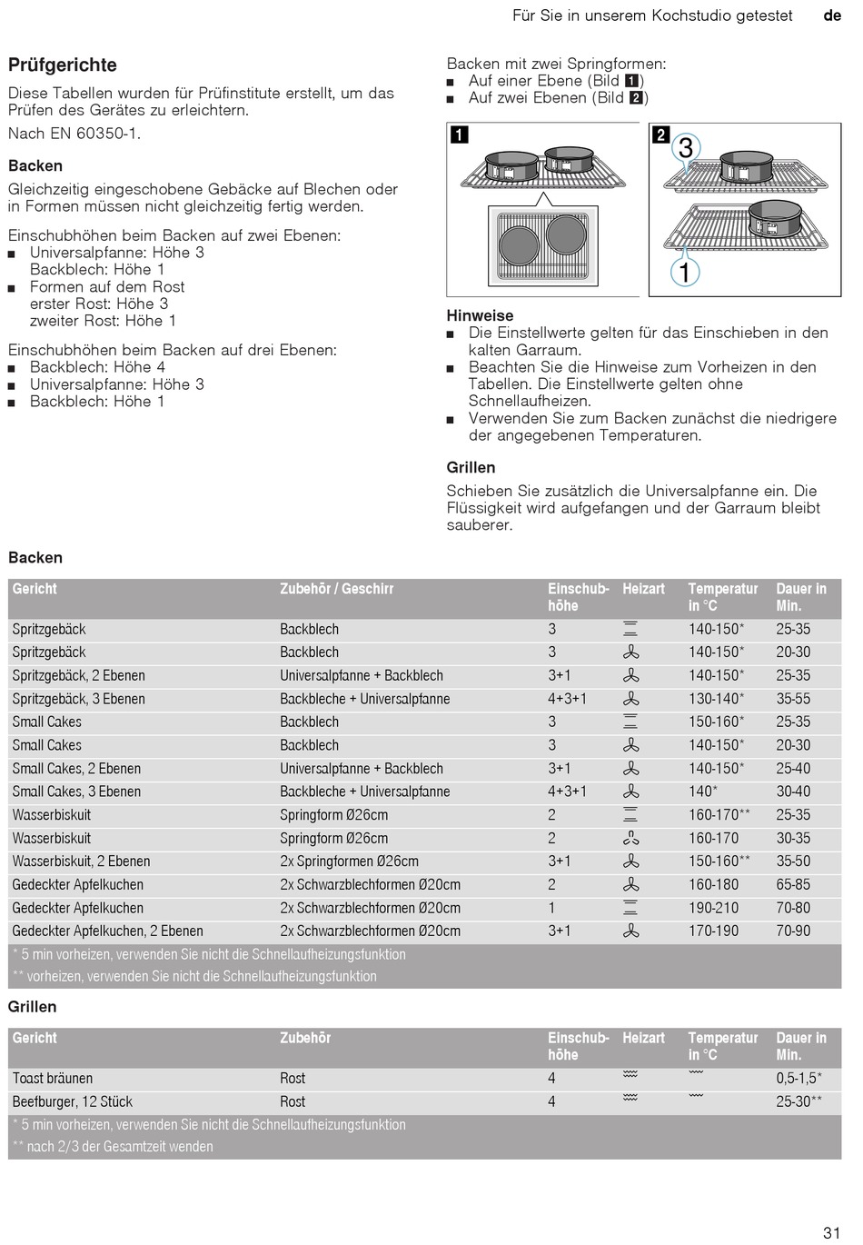 Einschubhöhen beim Backen auf zwei Ebenen: