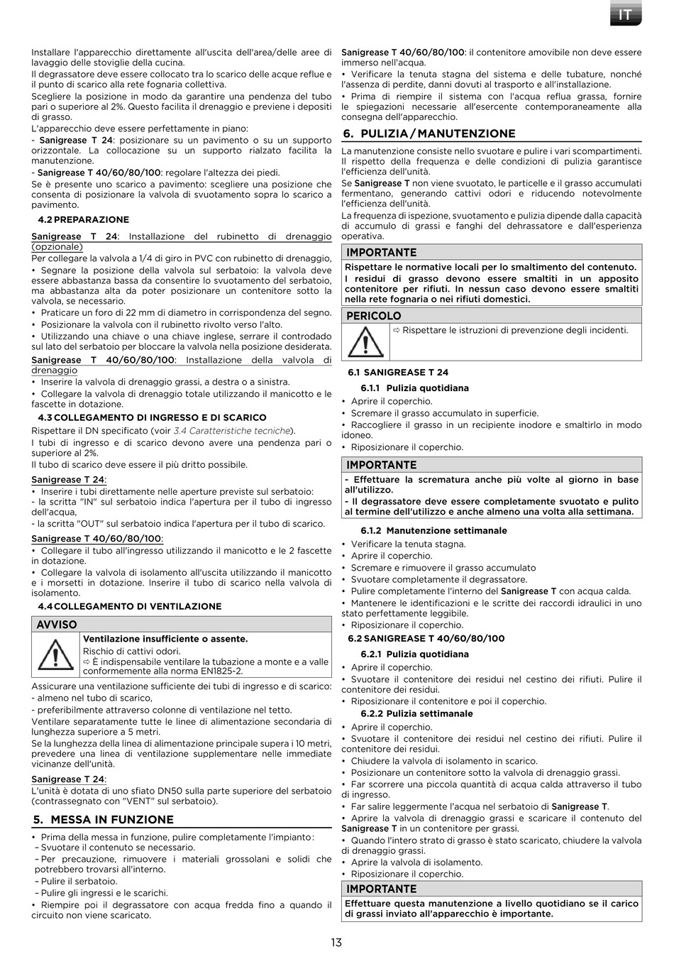 - Il degrassatore deve essere completamente svuotato e pulito