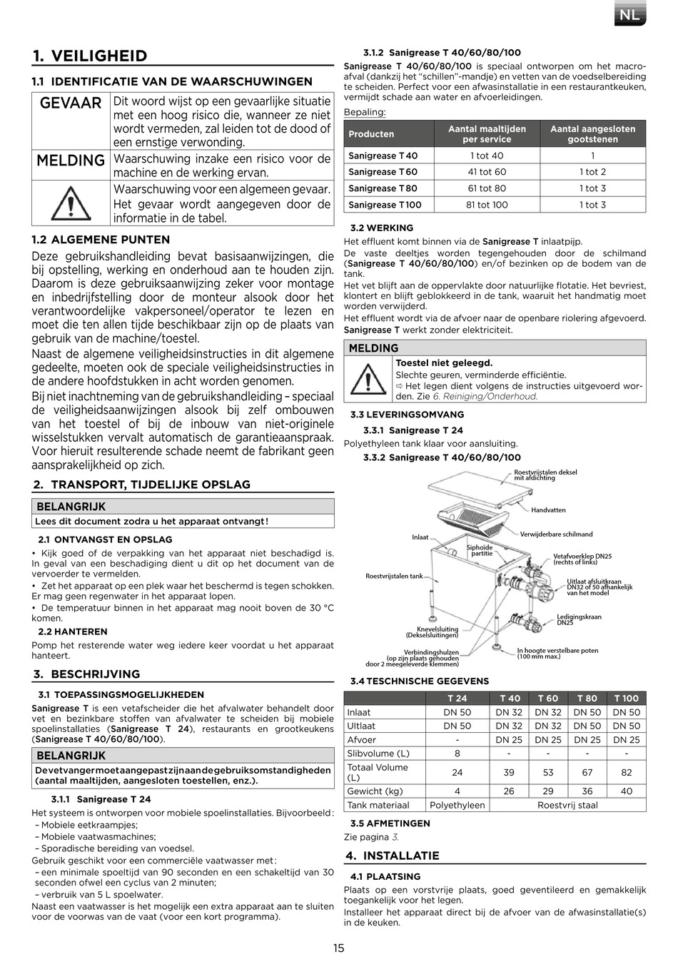 spoelinstallaties (Sanigrease T 24), restaurants en grootkeukens