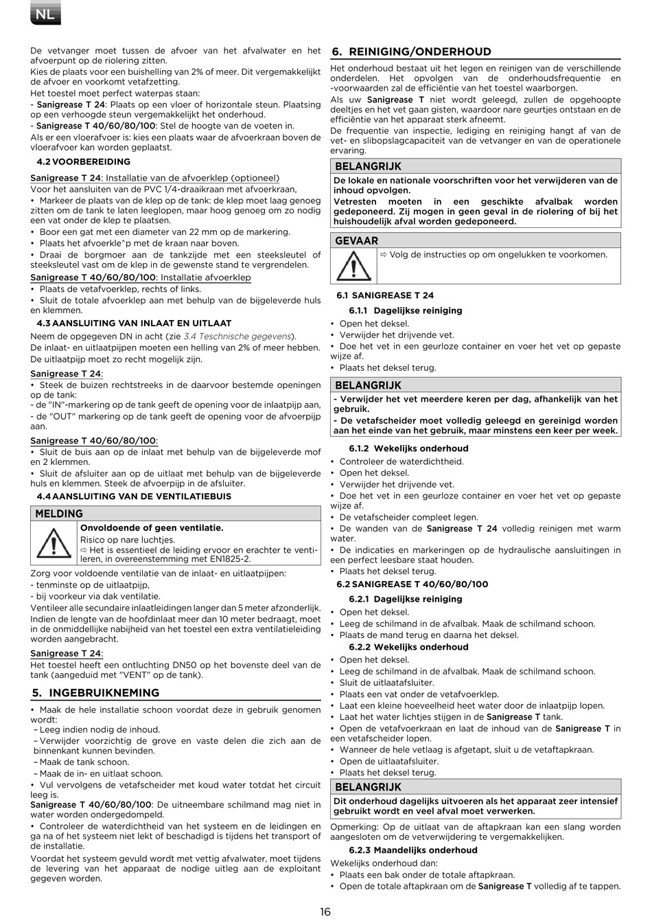 • De wanden van de Sanigrease T 24 volledig reinigen met warm