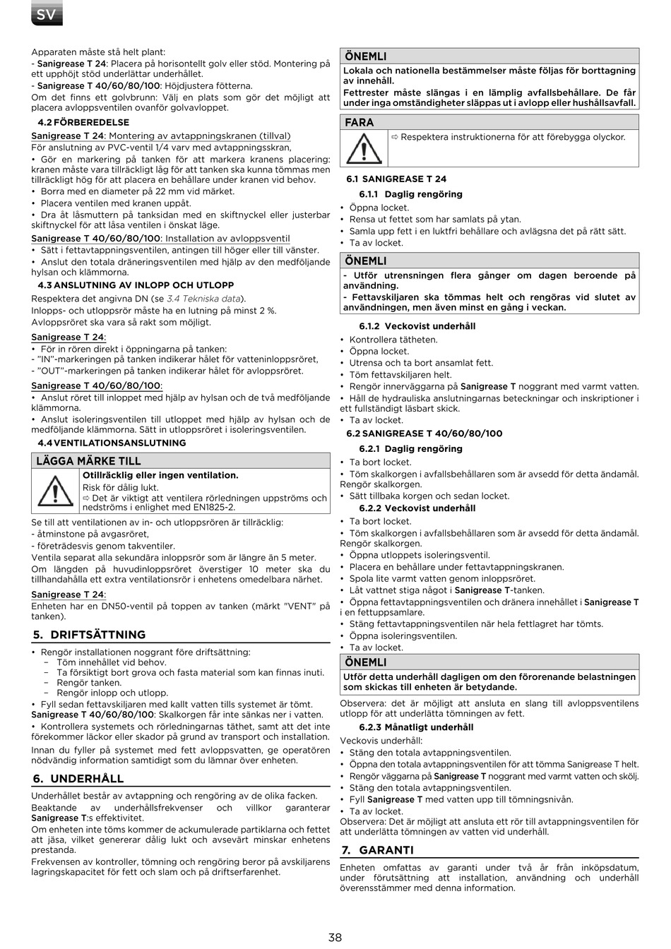 • Rengör väggarna på Sanigrease T noggrant med varmt vatten och skölj.