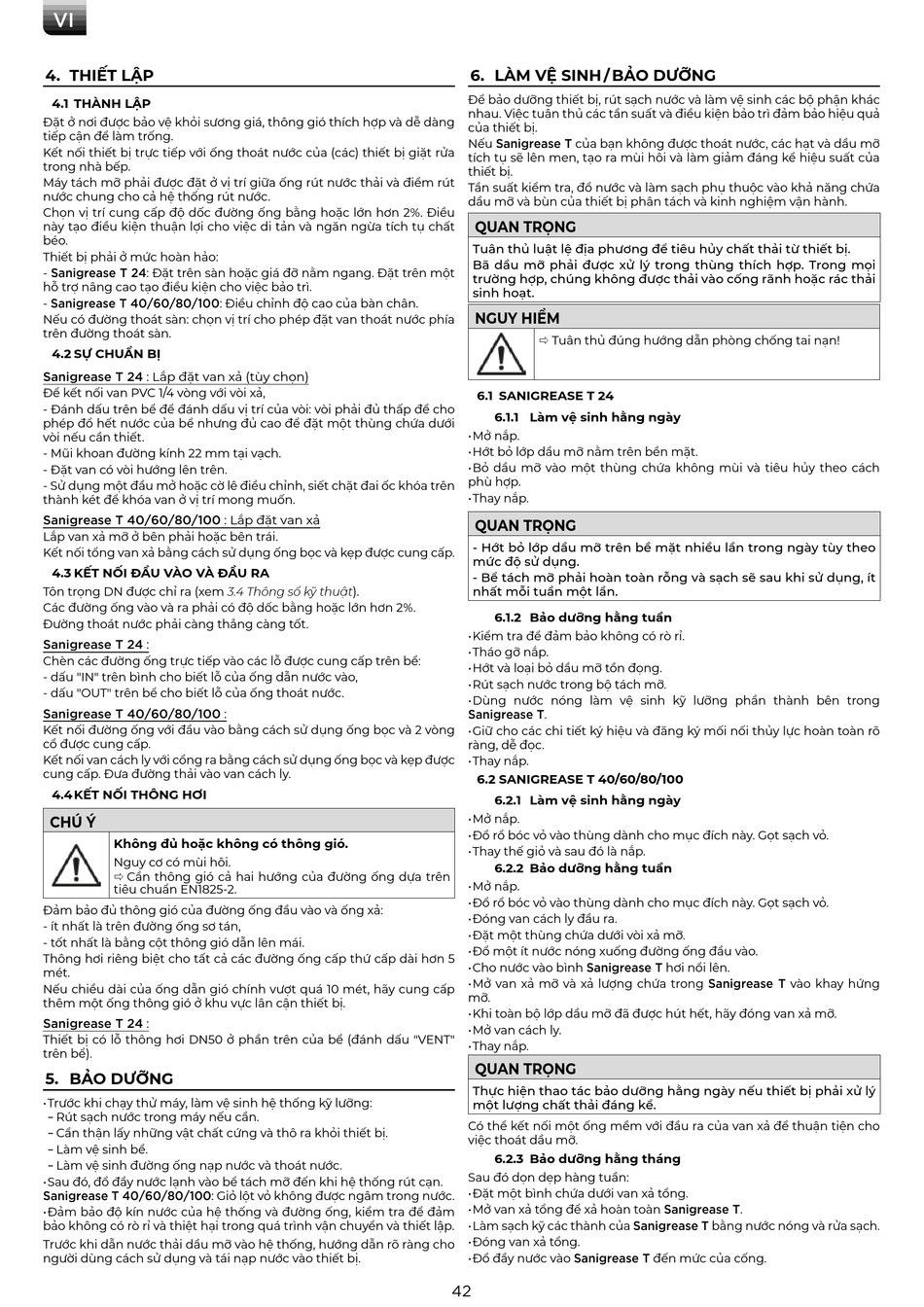 - Bể tách mỡ phải hoàn toàn rỗng và sạch sẽ sau khi sử dụng, ít