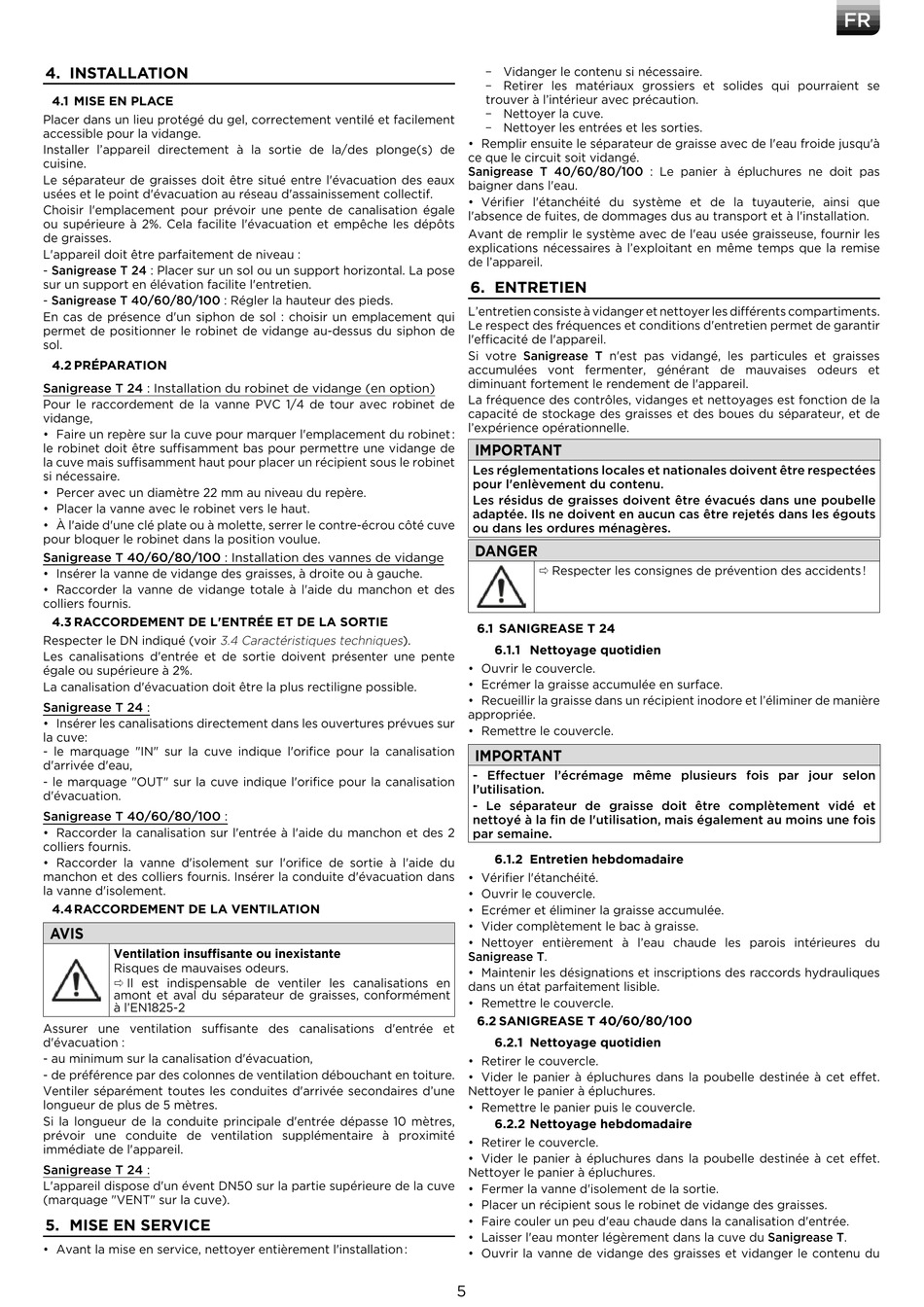 - Sanigrease T 24 : Placer sur un sol ou un support horizontal. La pose
