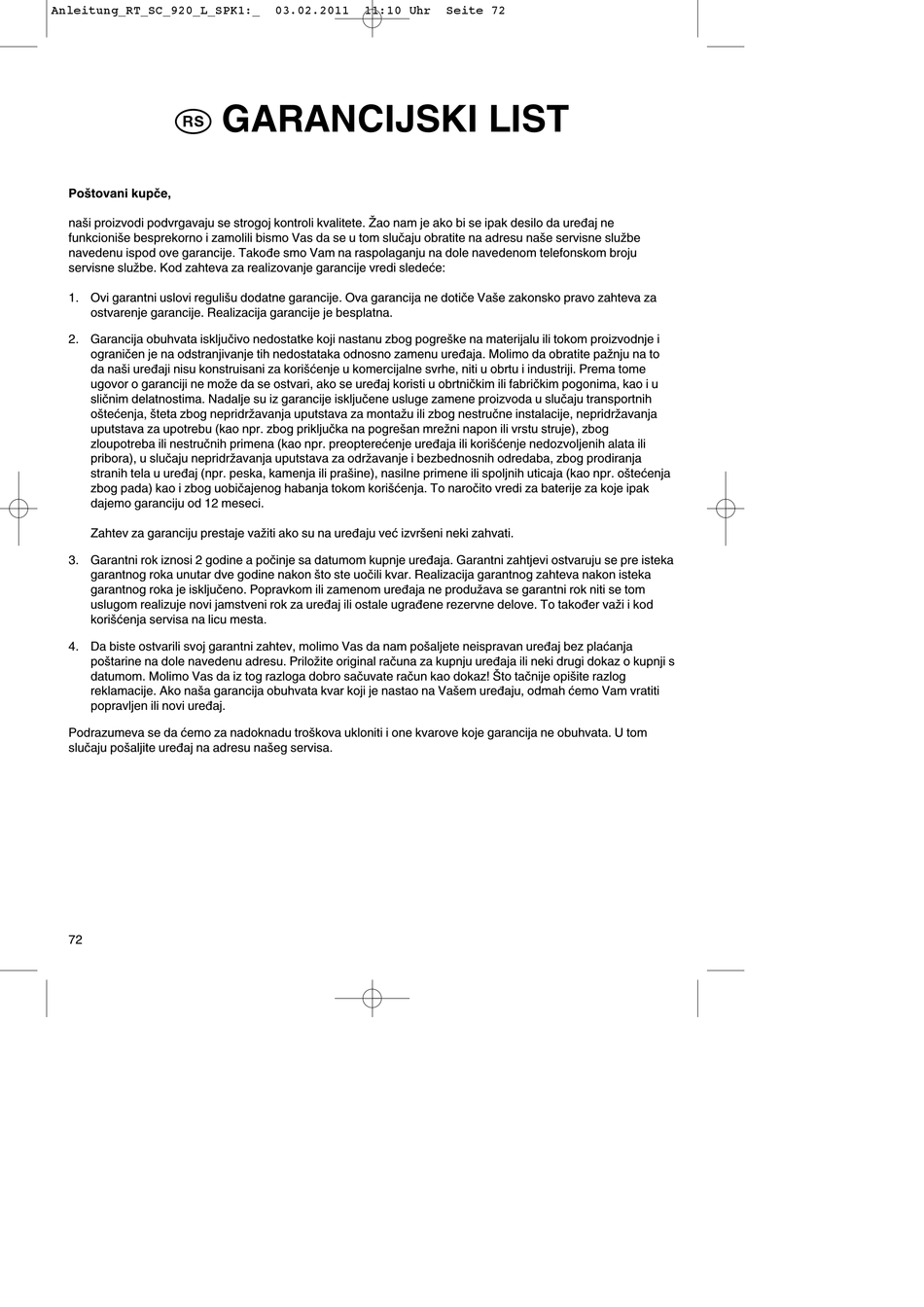 ograničen je na odstranjivanje tih nedostataka odnosno zamenu uređaja. Molimo da obratite pažnju na to