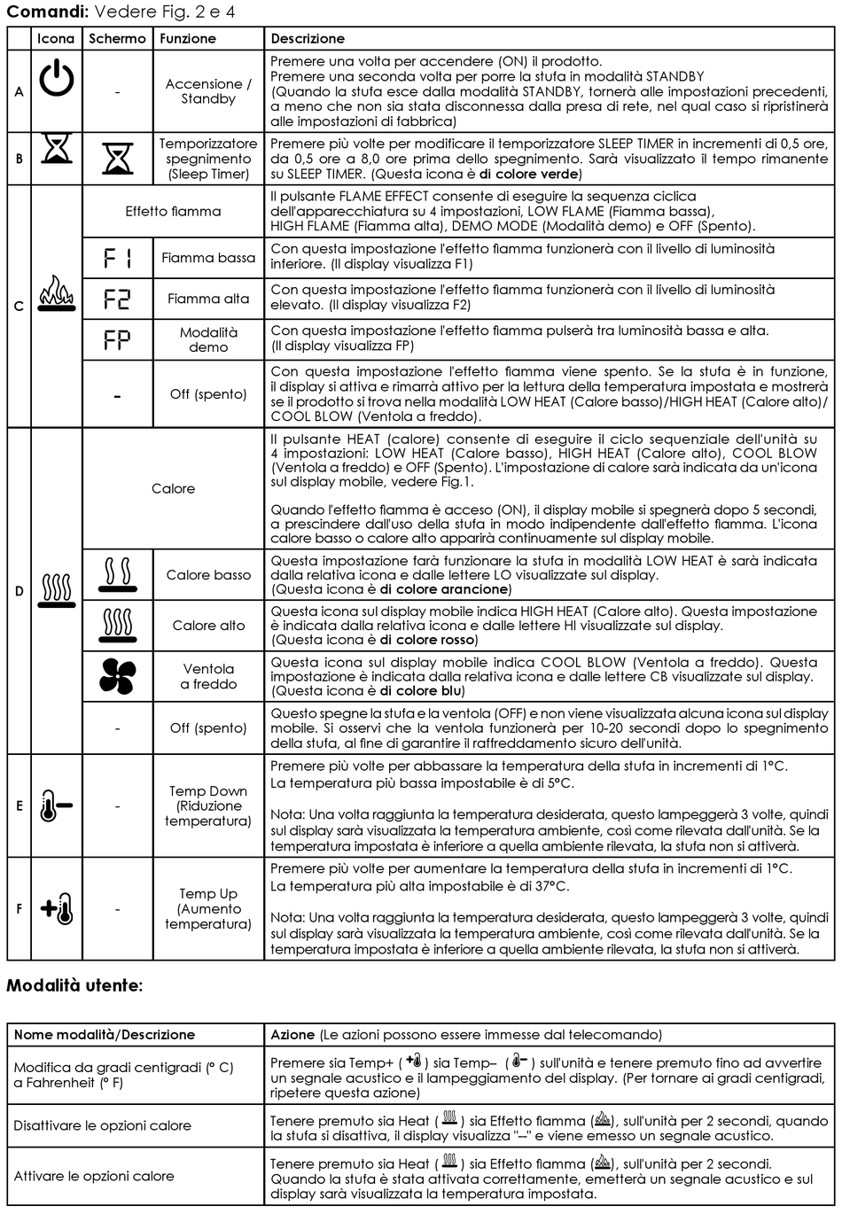 Comandi: Vedere Fig. 2 e 4