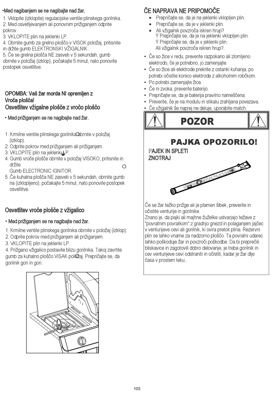 • Med prižiganjem se ne nagibajte nad žar.