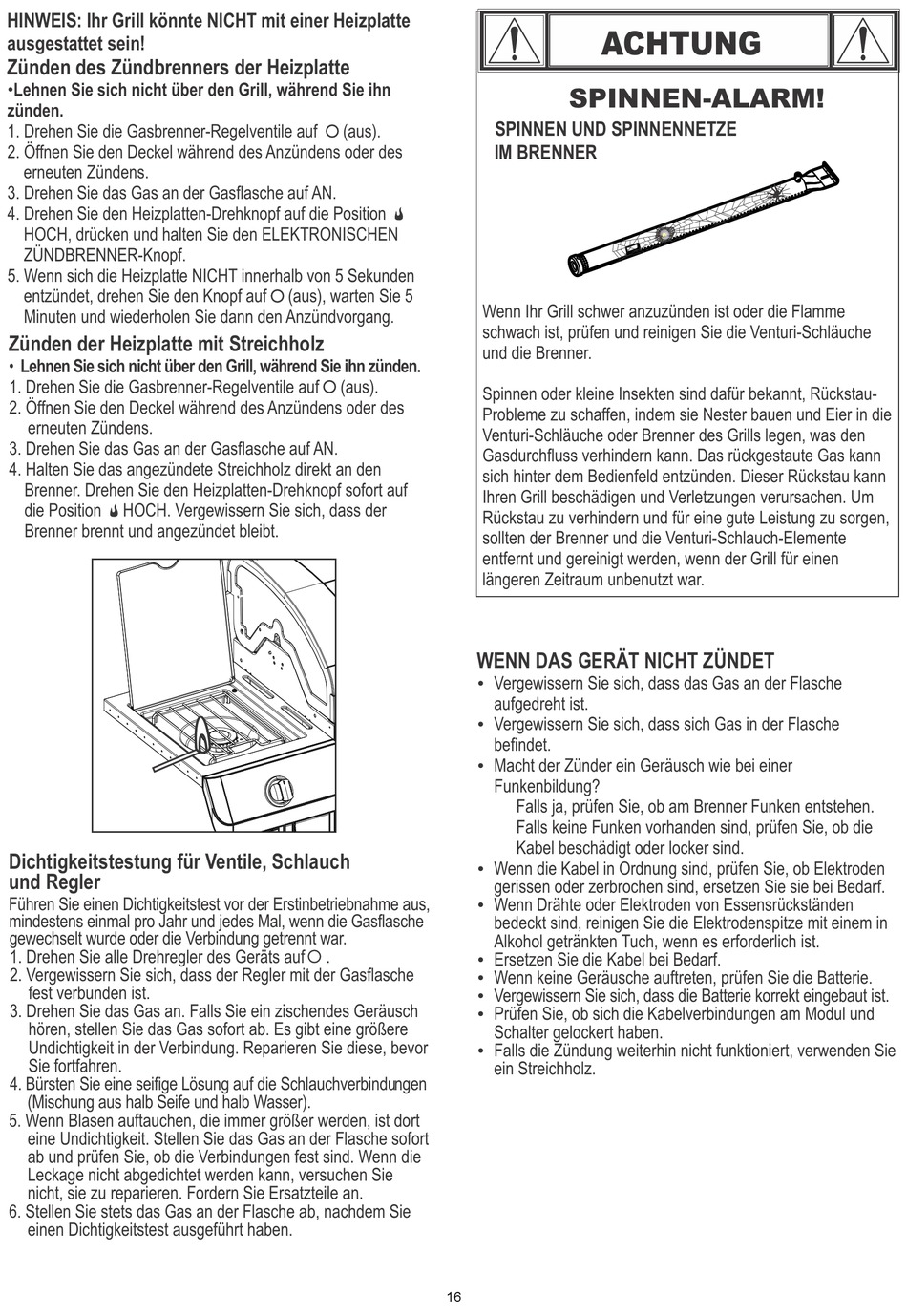 • Lehnen Sie sich nicht über den Grill, während Sie ihn zünden.