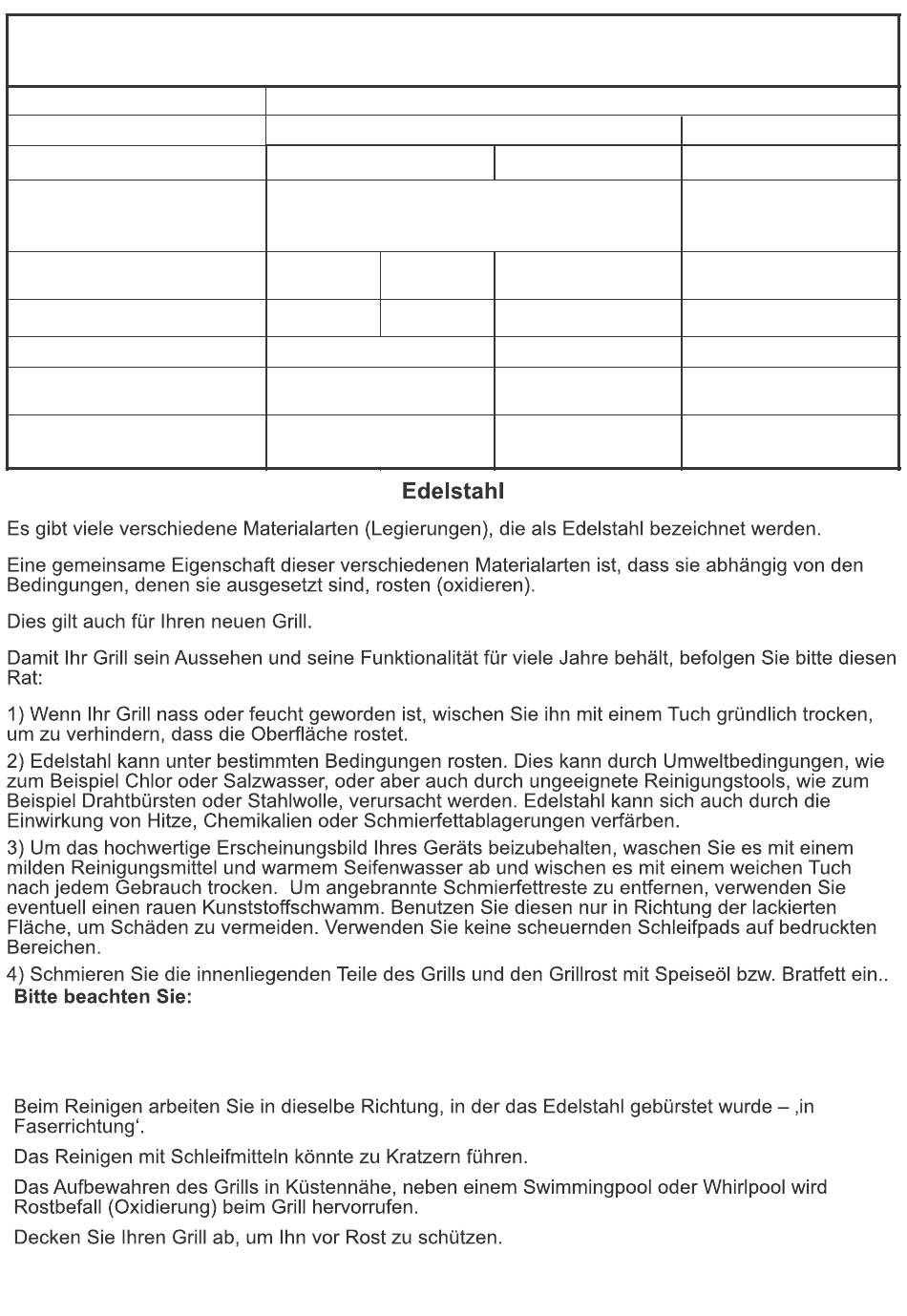 Verwenden Sie zum Reinigen von Edelstahl niemals Stahlwolle oder ähnliches, um