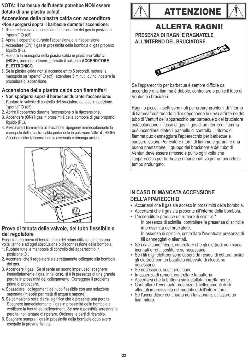 •Non sporgersi sopra il barbecue durante l'accensione.