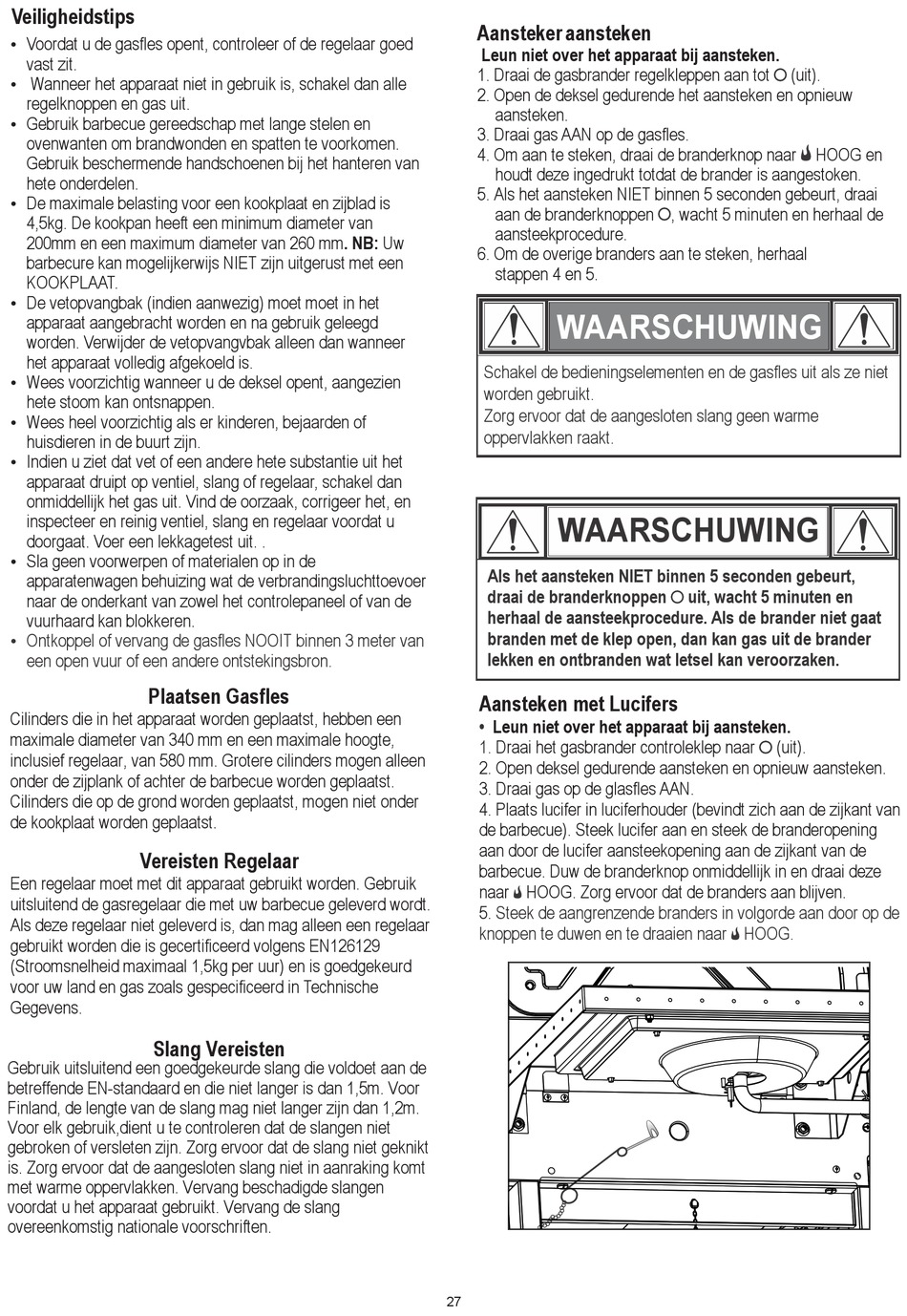 de barbecue). Steek lucifer aan en steek de branderopening