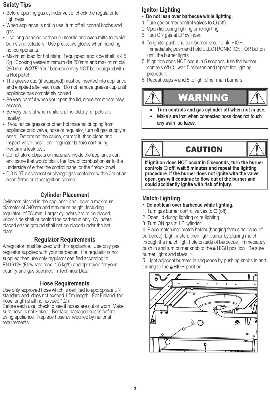 barbecue). Light match; then light burner by placing match