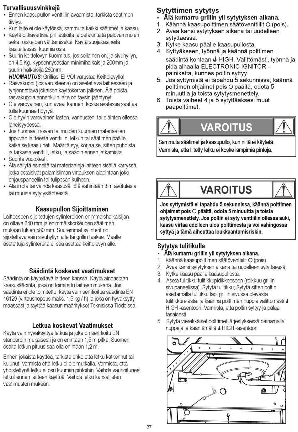 Älä kumarru grillin yli sytytyksen aikana.