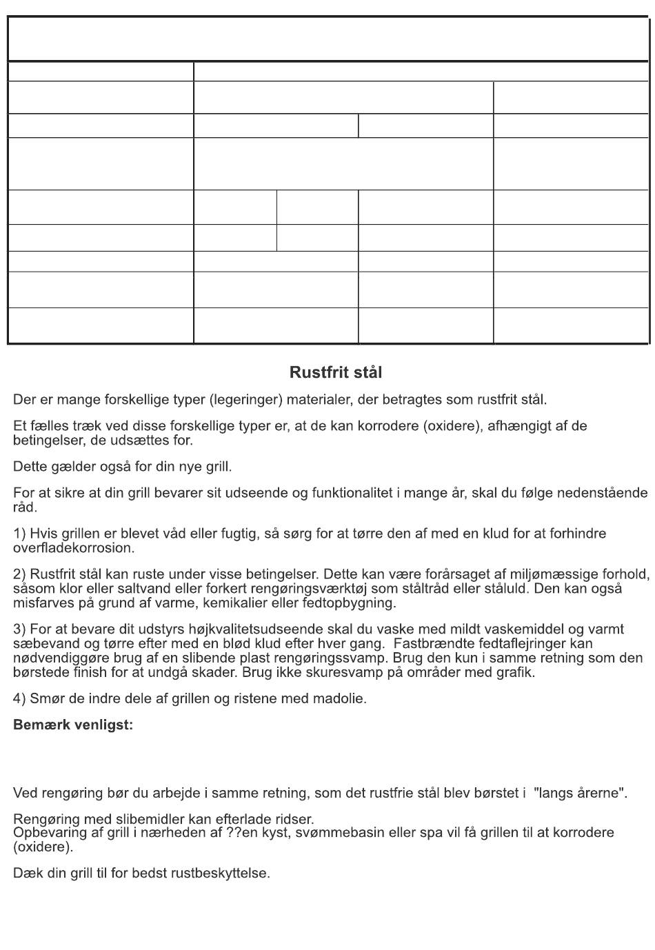 Brug aldrig ståluld eller lignende til rengøring af rustfrit stål for at undgå at ridse overfladen og give et