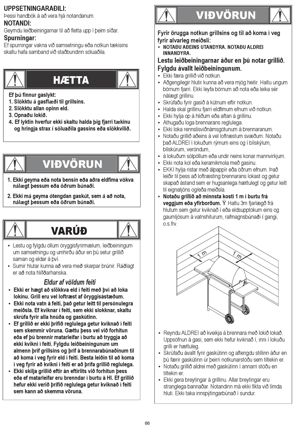 Notaðu grillið að minnsta kosti 1 m í burtu frá
