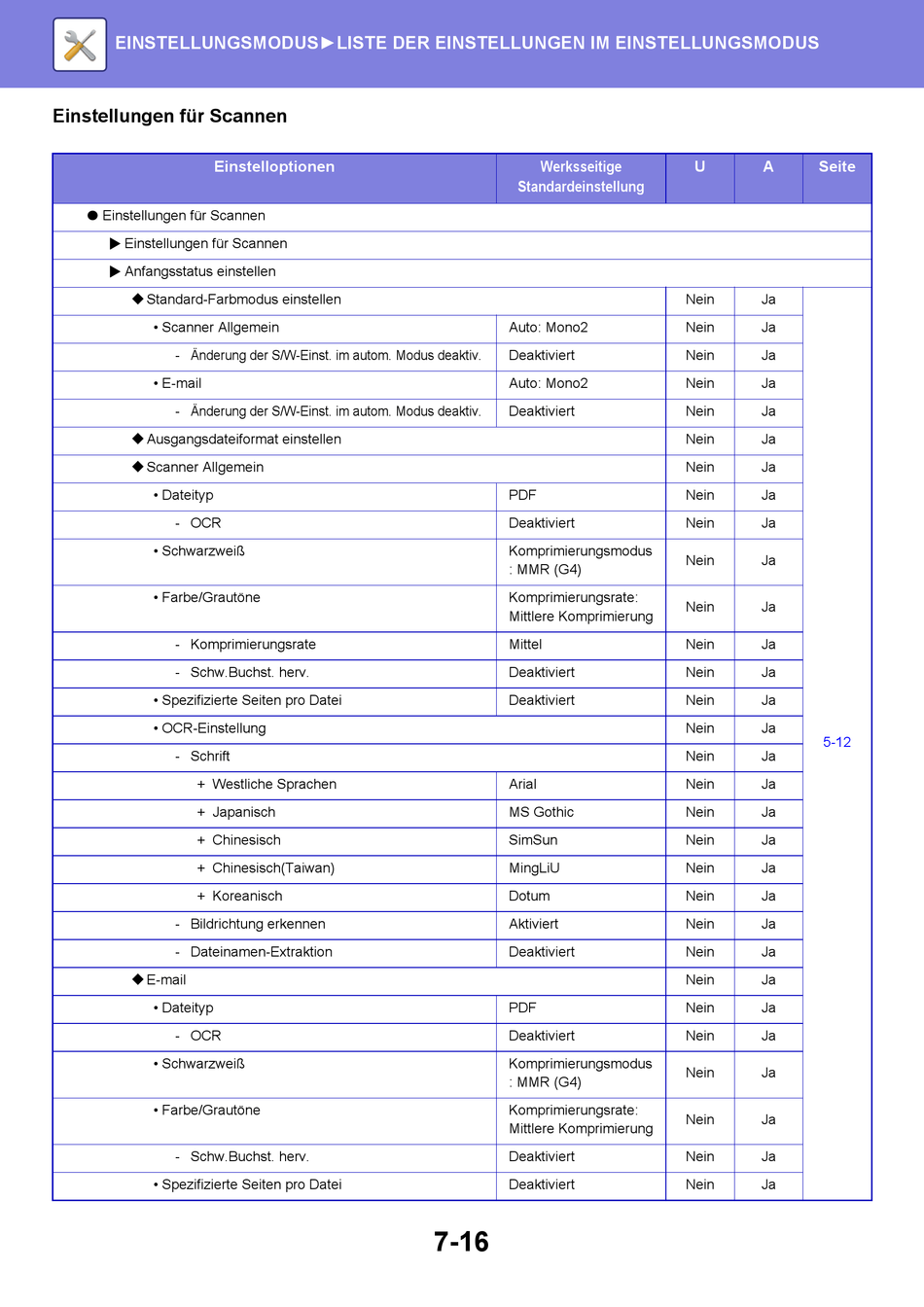 ● Einstellungen für Scannen
