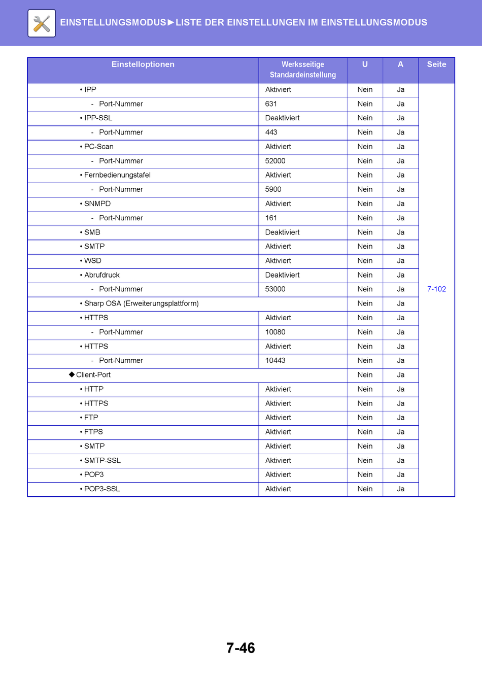 EINSTELLUNGSMODUS►LISTE DER EINSTELLUNGEN IM EINSTELLUNGSMODUS