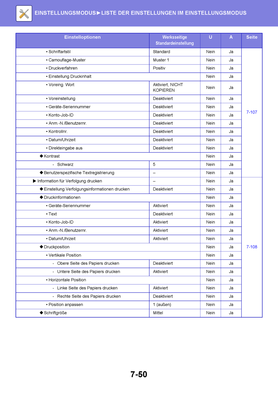 EINSTELLUNGSMODUS►LISTE DER EINSTELLUNGEN IM EINSTELLUNGSMODUS