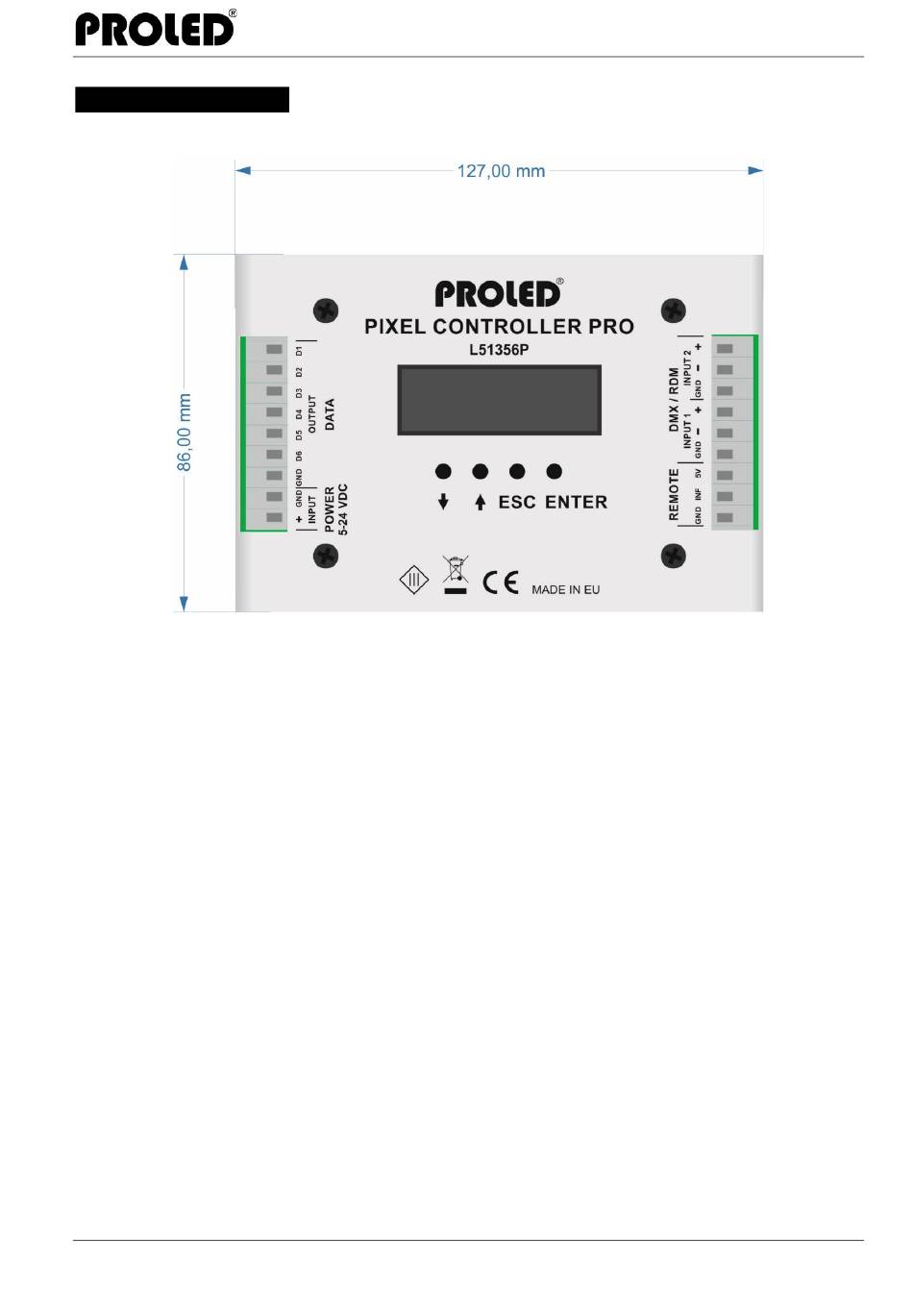 Abmessungen - Proled Pixel Controller Pro Bedienungsanleitung