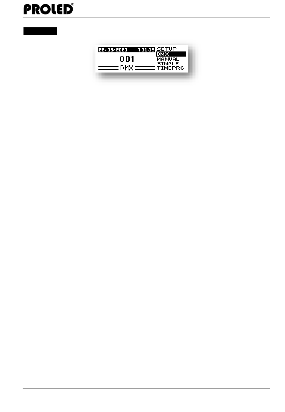 In DMX mode the controller receives DMX-signals and controls the LED, according to the chosen setting.