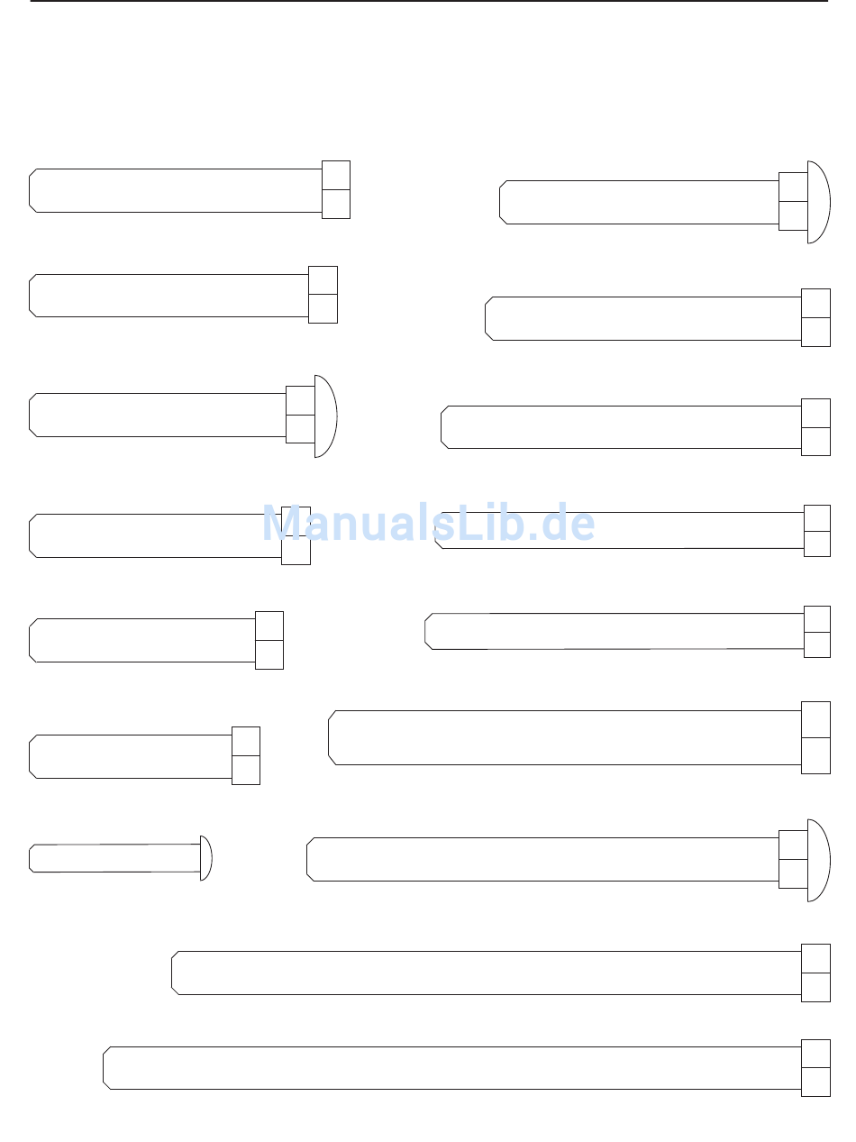 Dieses Diagramm hilft Ihnen bei der Identifikation der kleinen Montageteile. Die Zahl in Klammern unter jedem Teil