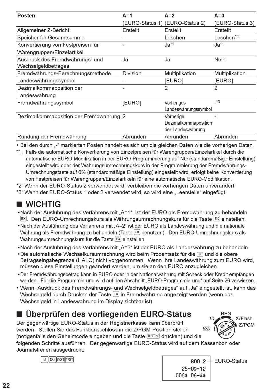 *2: Wenn der EURO-Status 2 verwendet wird, verbleiben die vorherigen Daten unverändert.