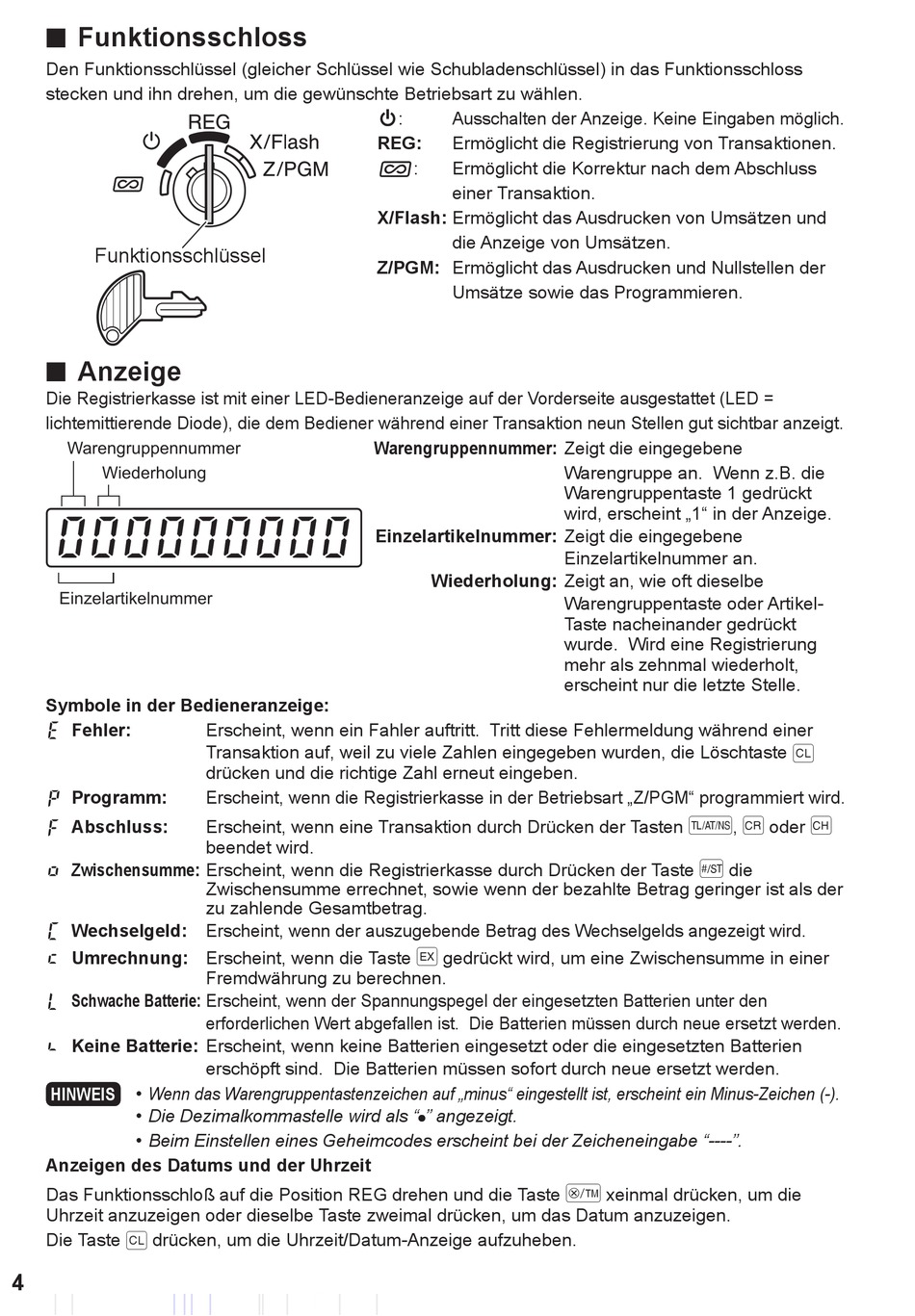 • Wenn das Warengruppentastenzeichen auf „minus" eingestellt ist, erscheint ein Minus-Zeichen (-).