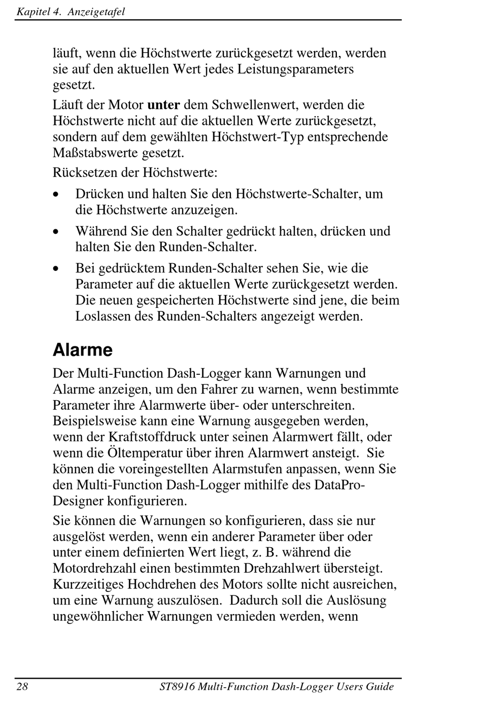 Parameter ihre Alarmwerte über- oder unterschreiten.