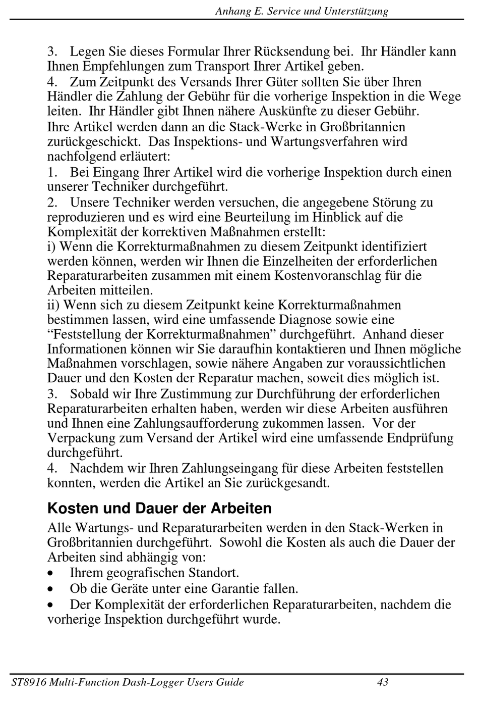 zurückgeschickt. Das Inspektions- und Wartungsverfahren wird
