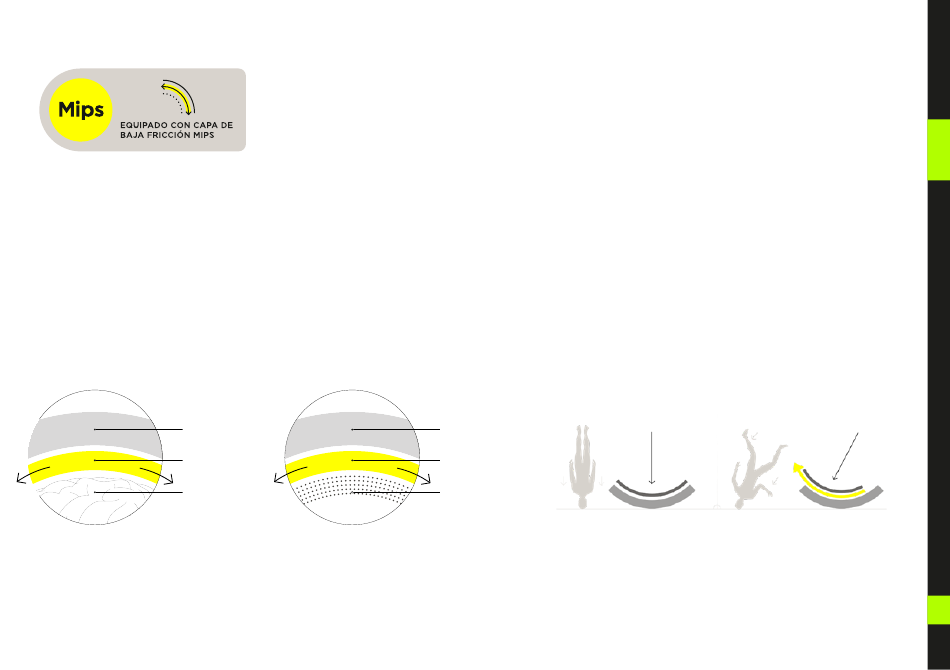 mayor frecuencia en ángulo con el suelo, no frontalmente. La tecnología MIPS ® consiste en una capa de baja fricción que permite que la capa externa