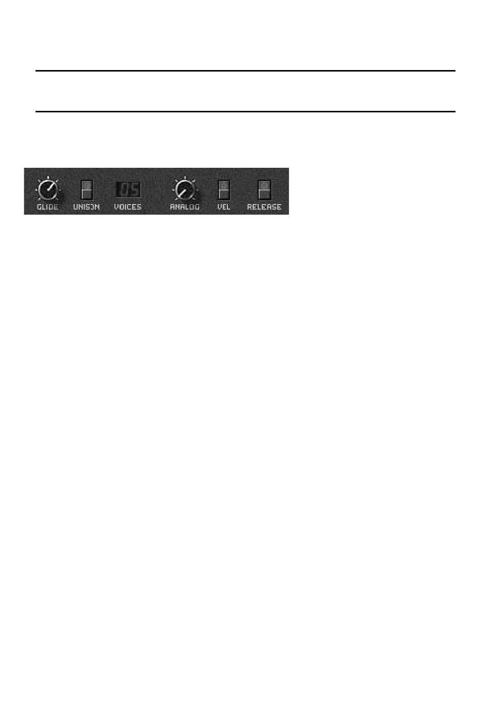 nen Synthesizern. Die einstellbare Zeitdauer des GLIDE-Reglers geht von 0