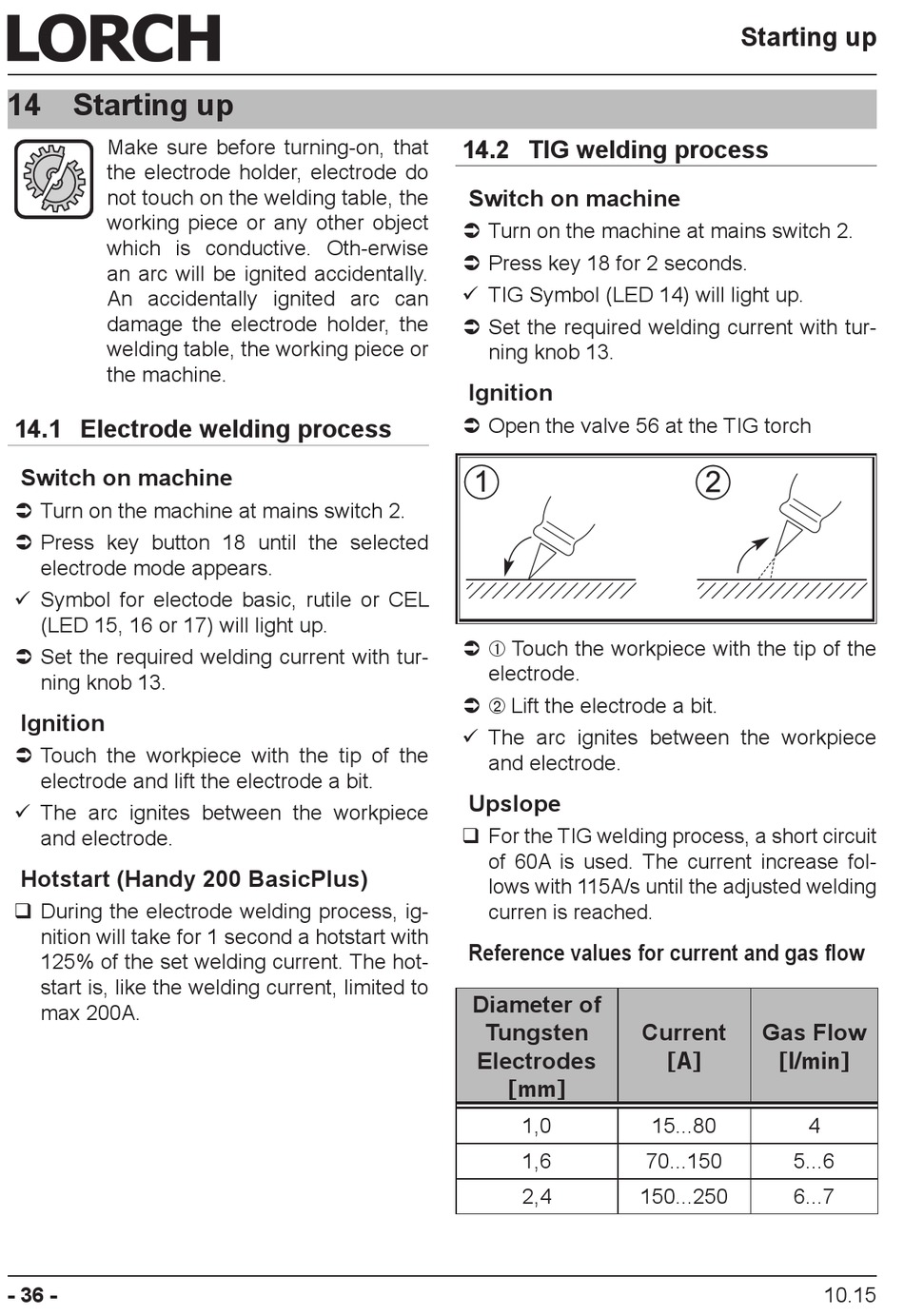 9 TIG Symbol (LED 14) will light up.