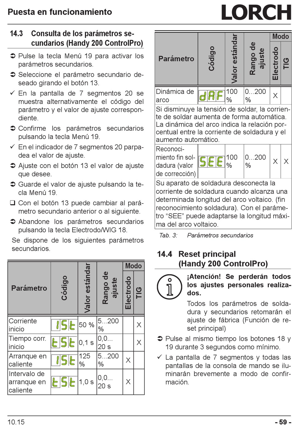 Todos los parámetros de solda-