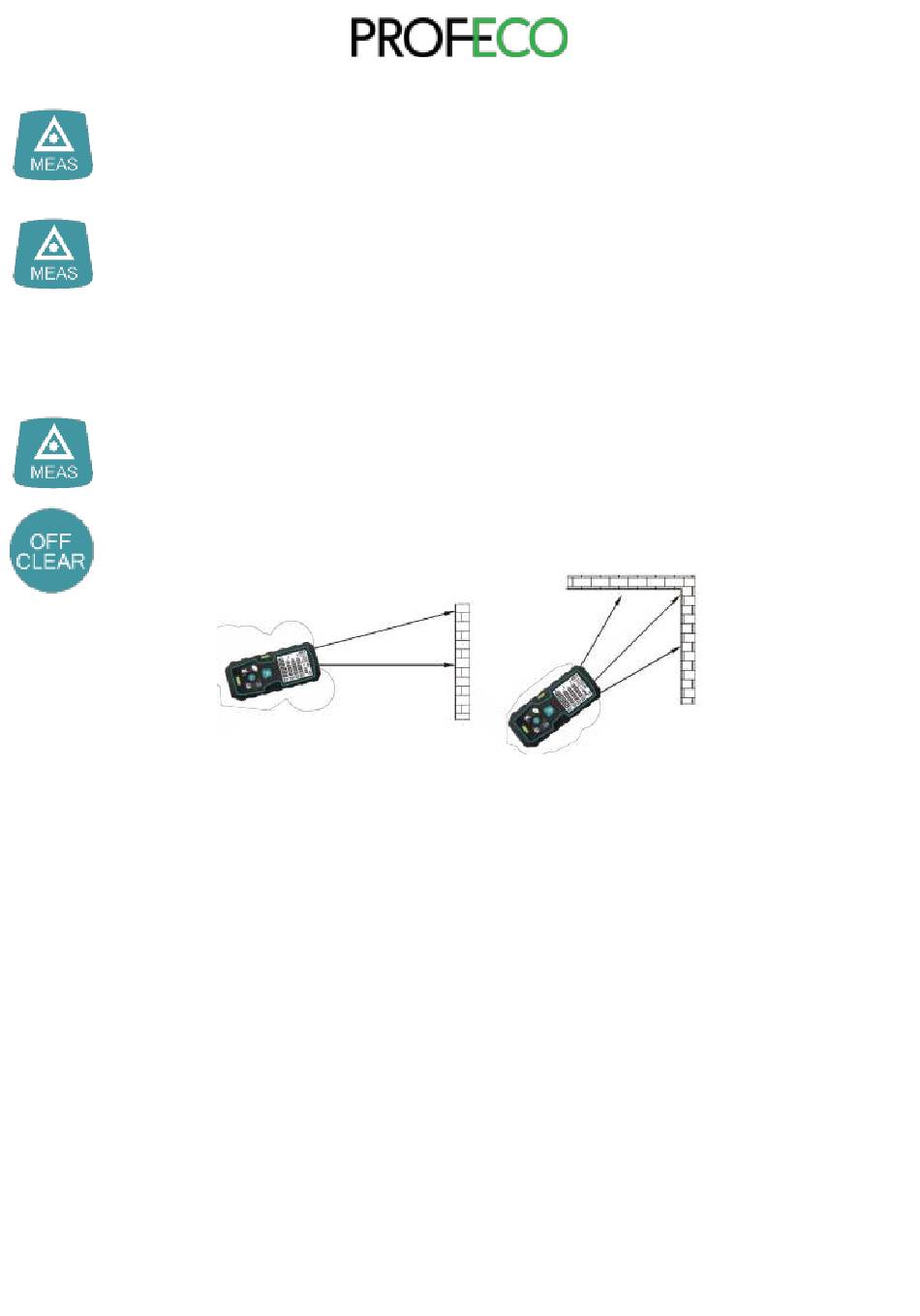 Press the key: switch on the laser. Press the button again, measurement starts.
