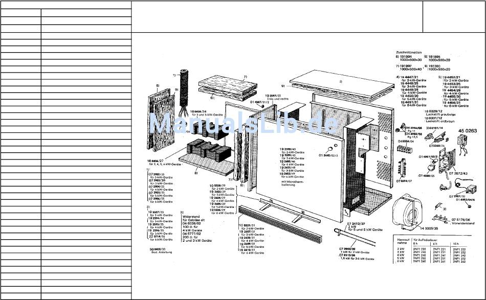 Ersatzteillisten; Permatherm ® Kompaktspeicher; 2Nf1220 -2Nf1260 / 2 Nf1221 - 2Nf1261 / 2 Nf1222 - 2Nf1262 - Dimplex Permatherm Servicehandbuch