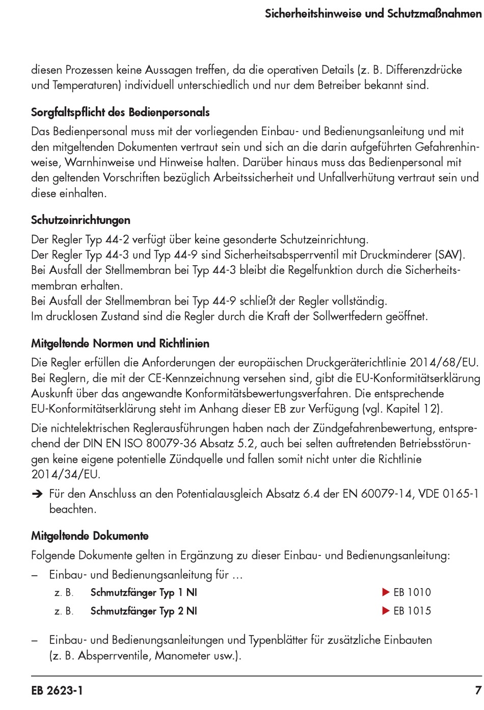 Der Regler Typ 44-2 verfügt über keine gesonderte Schutzeinrichtung.