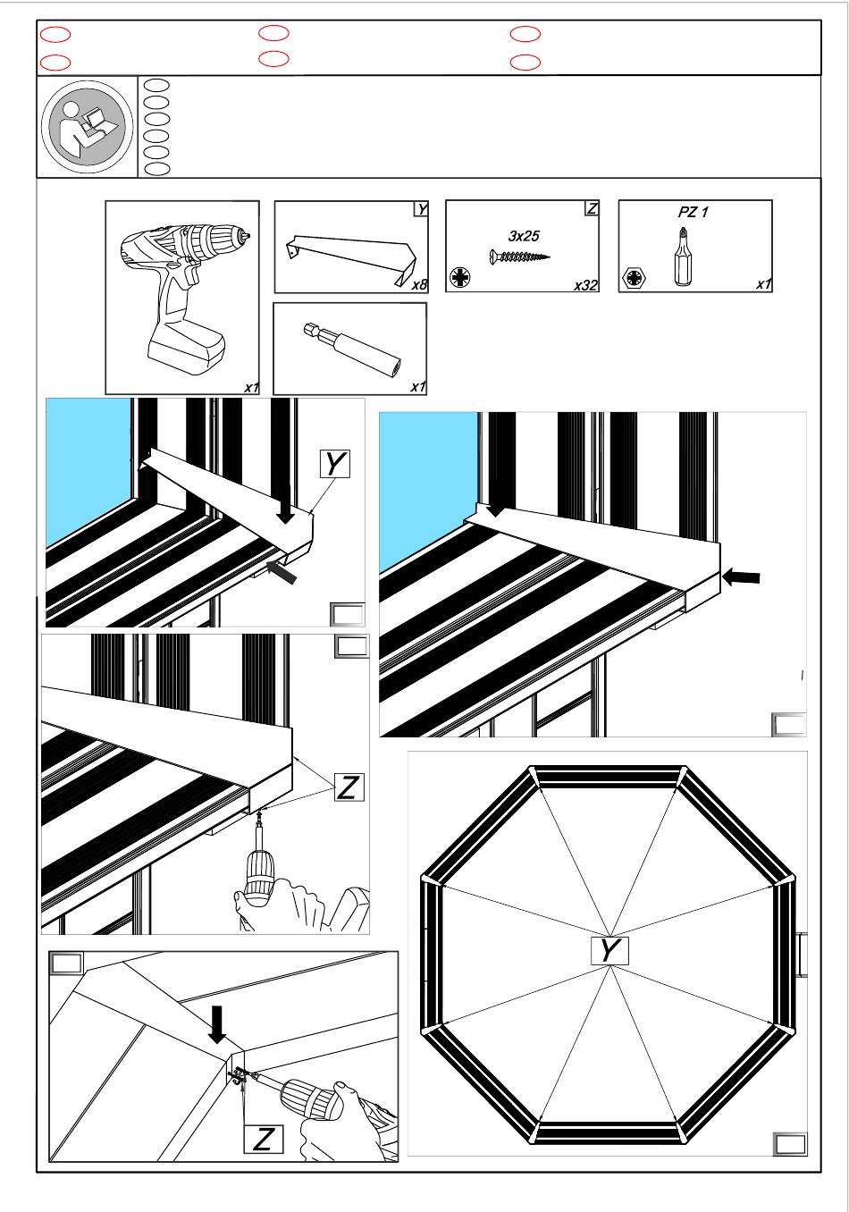 Montaggio di mascherini (Y) per le tavole da terrazza.