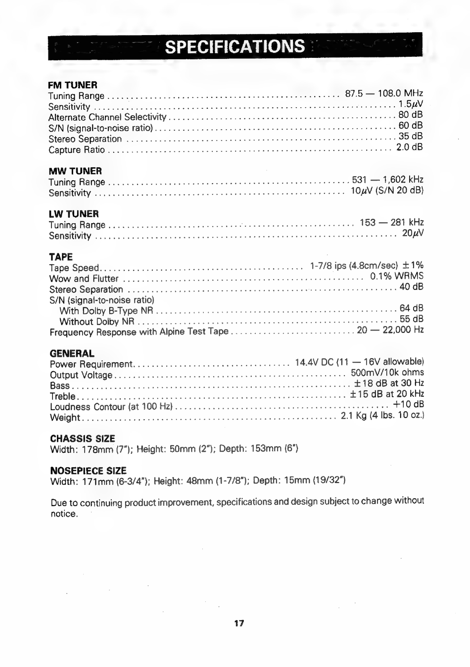 Frequency Response with Alpine Test Tape.........--..-.----.--0-05: 20 — 22,000 Hz