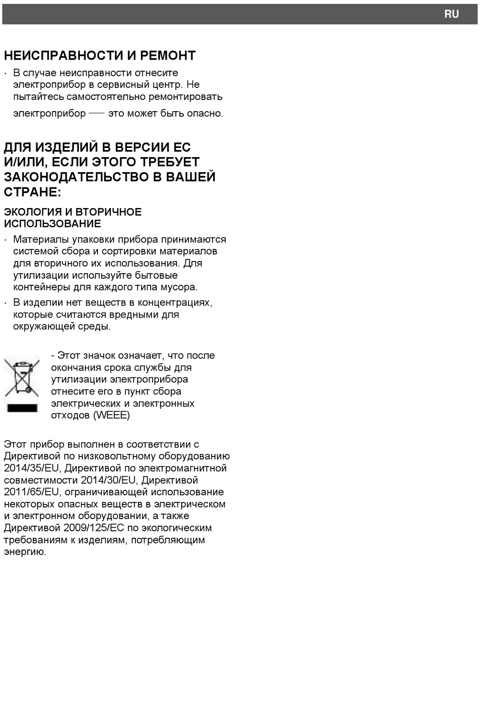 ДЛЯ ИЗДЕЛИЙ В ВЕРСИИ ЕС