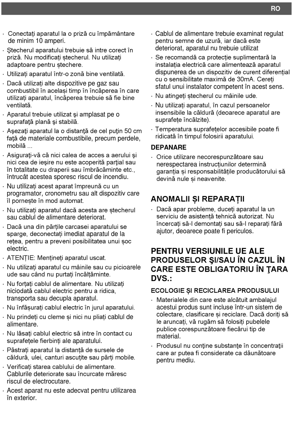 Aparatul trebuie utilizat şi amplasat pe o
