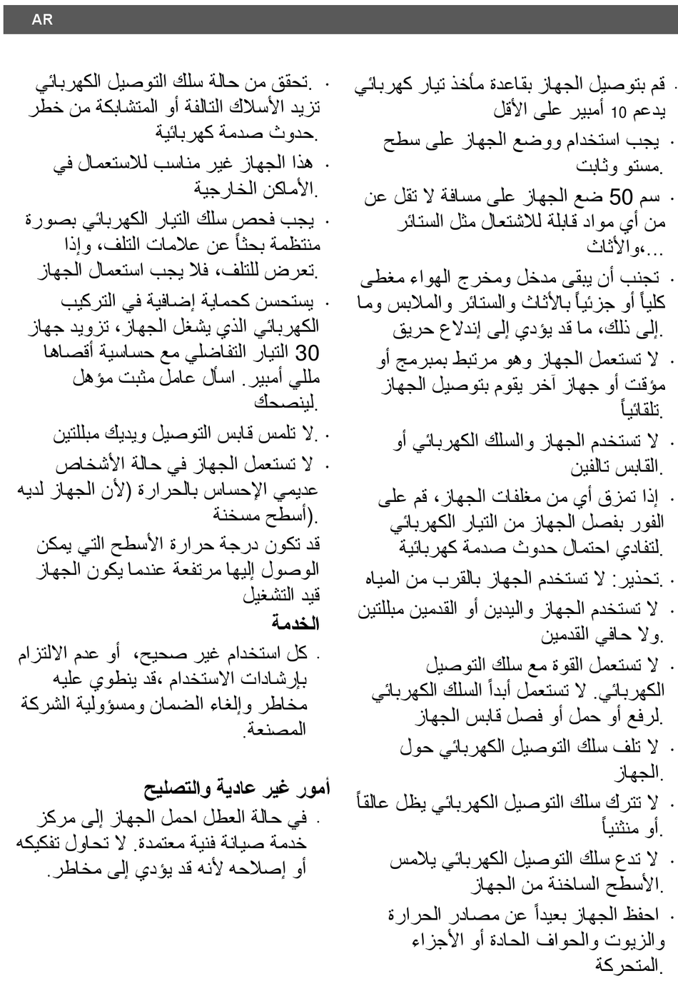 ال تستخدم الجهاز والسلك الكهربائي أو